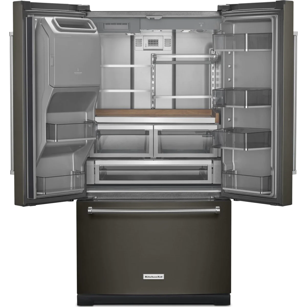 A refrigerator maintains a compartmentalized space below room temperature. They come in many configurations and usually include a sub-freezing compartment.